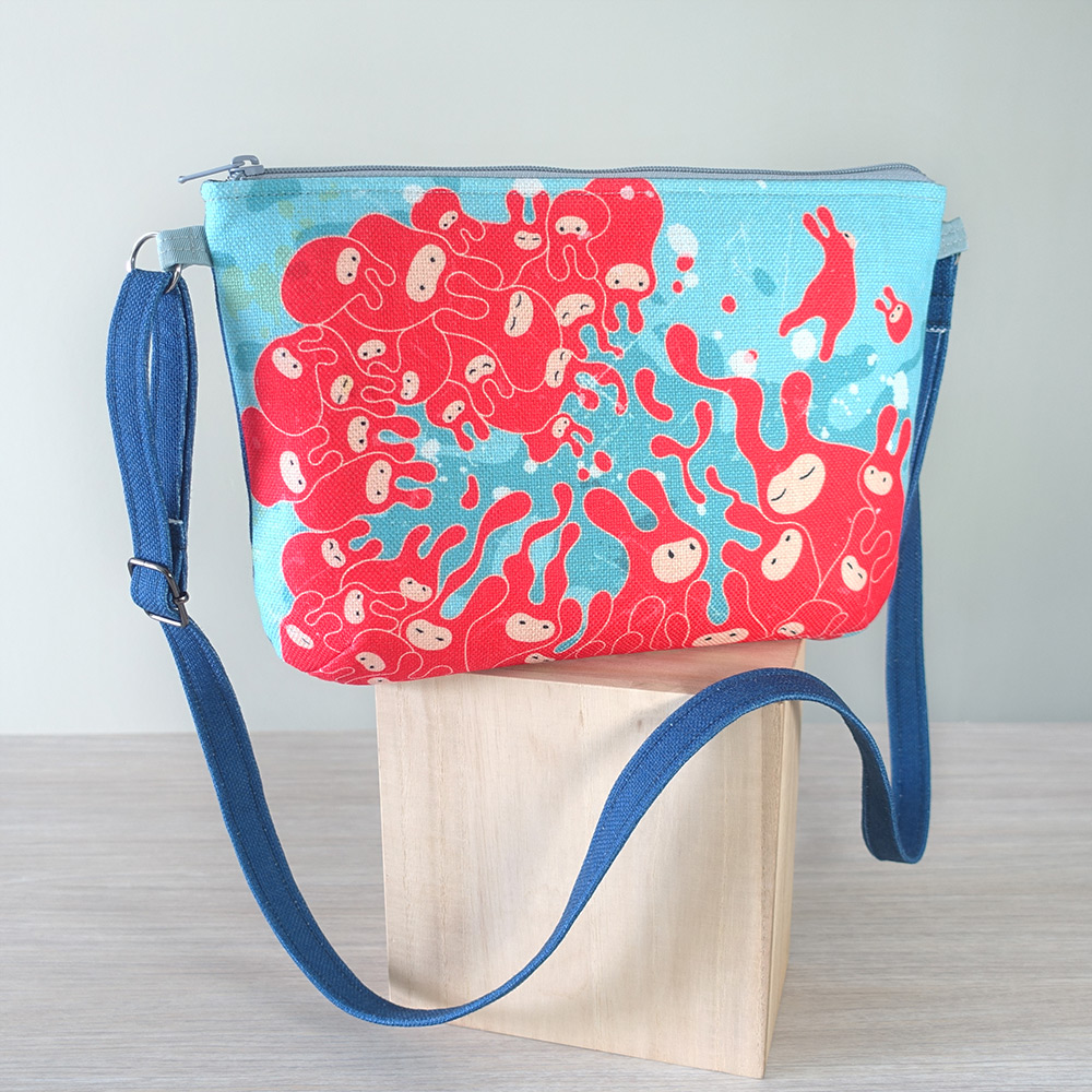 This crossbody bag features PippiRabbit in-house design and illustration, printed on medium weight polyester canvas fabric.